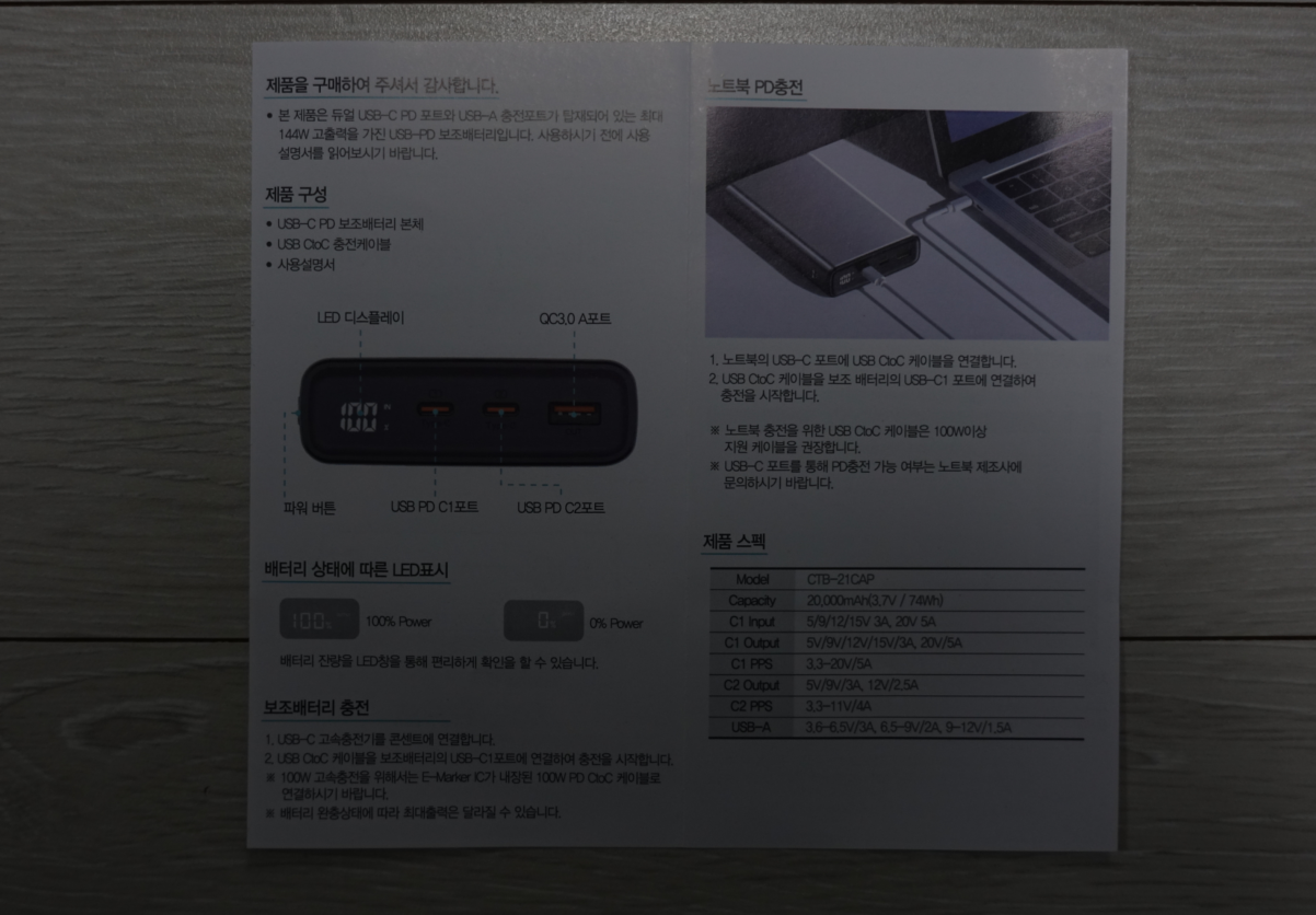 노트북의 충전 프로필을 보고 처음 구매한 것은 플레오맥스 1만 30와트 보조배터리였다.