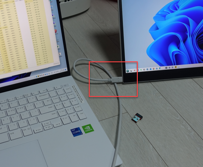 동봉 된 케이블로 엘지그램 플러스 보조모니터 연결 시도 했는데 연결이 안된다.