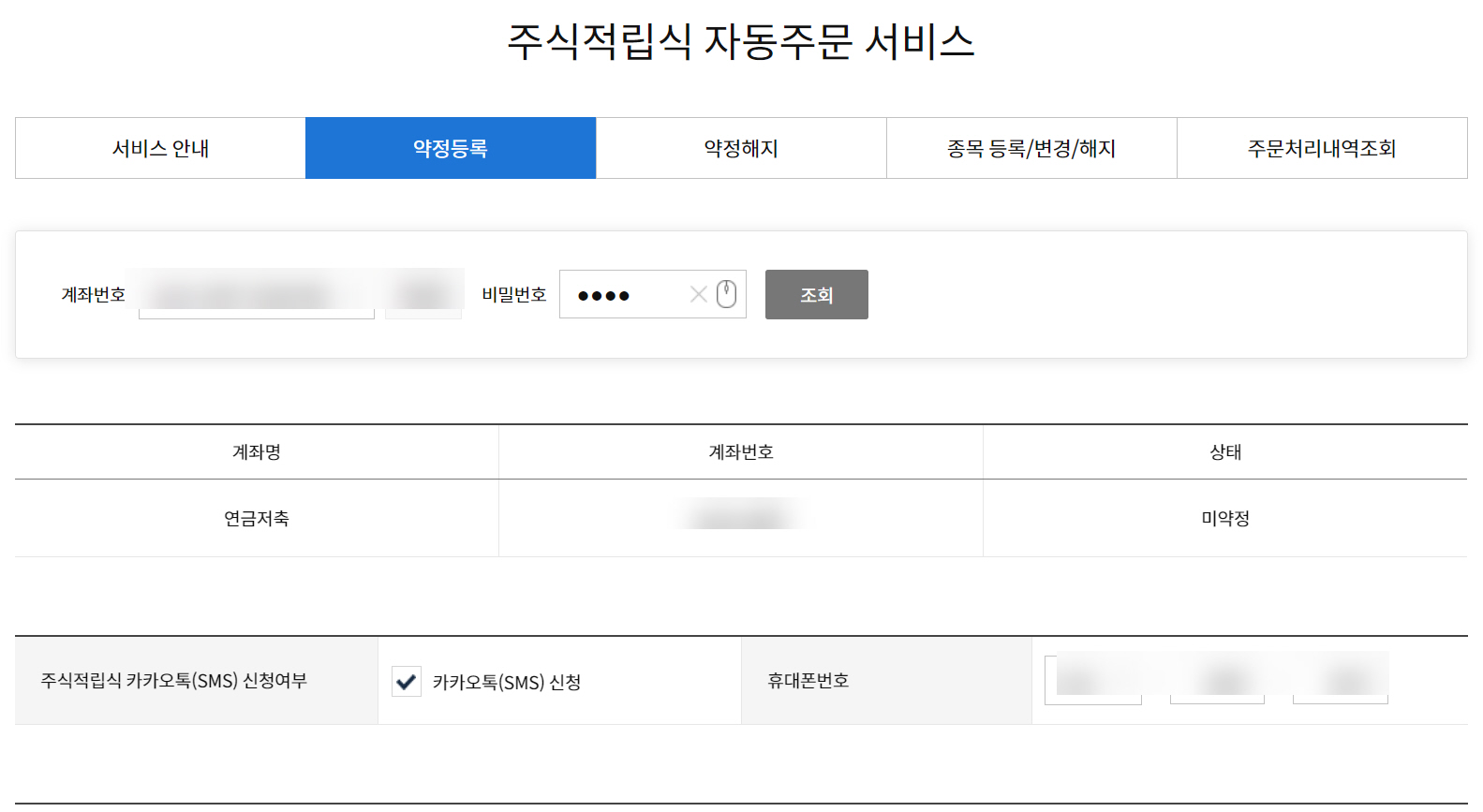 - 주식적립식 자동주문 서비스 가입은 모바일로 가능하지만 구조적 문제로 홈페이지에서만 가능하다.
